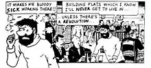In Tintin in the Land of the Soviets, the Bolsheviks were presented as villains. Hergé drew on Moscow Unveiled, a work given to him by Wallez and authored by Joseph Douillet, the former Belgian consul in Russia, that is highly critical of the Soviet regime, although Hergé contextualised this by noting that in Belgium, at the time a devout Catholic nation, "anything Bolshevik was atheist".[52] In the story, Bolshevik leaders are motivated by personal greed and a desire to deceive the world. Tintin discovers, buried, "the hideout where Lenin, Trotsky, and Stalin have collected together wealth stolen from the people". In 1999 the issue of Tintin's politics was the subject of a debate in the French parliament;[92] this event prompted the British weekly newspaper The Economist to publish an editorial on the matter.[93]