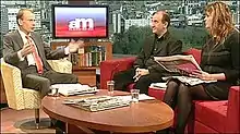Marr reviewing the papers with Armando Iannucci and Janine di Giovanni in December 2009