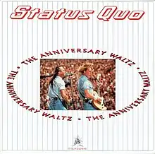 "The Anniversary Waltz" is the title of two medley singles released in 1990 by English rock band Status Quo.[1] The medleys consist of hit songs from the 1950s, 1960s, and 1970s. One of the songs performed, Dion's "The Wanderer" had previously been covered by Status Quo in 1984. "The Anniversary Waltz" was divided into two parts for release as a single. Part One was the bigger hit, reaching number two on the UK Singles Chart, and was included on their 1990 compilation album Rocking All Over the Years.