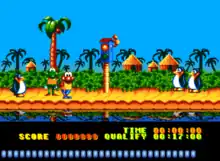 The Aquatic Games Starring James Pond and the Aquabats is an arcade sports game. The game is an aquatic-themed parody of games like Konami's Track & Field.