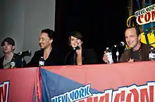 Casting began in October 2008 with Downey's signing.[12] Though Don Cheadle was also reported to be reprising his Iron Man 2 role of War Machine for The Avengers, he later stated that he did not think the character would appear in the film.[12][64] At the same time, two major prospects occurred for Marvel: Jon Favreau was brought in as an executive producer for the film,[12] and the company signed a long-term lease with Raleigh Studios to produce three other big-budget films—Iron Man 2, Thor, and Captain America: The First Avenger (2011)—at their Manhattan Beach, California complex.[65] In February 2009, Samuel L. Jackson signed a nine-picture deal with Marvel Entertainment to play Nick Fury in Iron Man 2 and other films.[38] In September 2009, Edward Norton, who played Bruce Banner in The Incredible Hulk stated that he was open to returning in the film.[66] The next month, executive producer Jon Favreau stated that he would not direct the film, but would "definitely have input and a say". Favreau also expressed concerns, stating, "It's going to be hard, because I was so involved in creating the world of Iron Man, and Iron Man is very much a tech-based hero, and then with Avengers you're going to be introducing some supernatural aspects because of Thor [...] [Mixing] the two of those works very well in the comic books, but it's going to take a lot of thoughtfulness to make that all work and not blow the reality that we've created".[67] In March 2009, actress Scarlett Johansson replaced Emily Blunt in portraying Natasha Romanoff in Iron Man 2, a deal that subsequently attached her to The Avengers.[29] The following day, Marvel announced that the film's release date had been pushed back to May 4, 2012, almost a full year later.[68] Chris Hemsworth and Tom Hiddleston joined the film's cast in June, returning as Thor and Loki, respectively.[26]