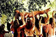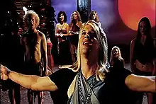 Director Brad Mays' 1997 stage production of The Bacchae had been a surprise hit in Los Angeles, drawing large audiences and earning excellent reviews.[2][3][4] It was ultimately nominated for three LA Weekly Theatre Awards, for Production Design, Original Musical Score, and Direction.[5] Considered particularly noteworthy was the production's use of ample though non-exploitive full-frontal nudity, most particularly in scenes portraying ritualized pagan worship and, ultimately, the violent ritual killing of the character Pentheus, king of Thebes. A major contributing factor in the production's effectiveness was the movement scoring by choreographer Kim Weild, a practitioner of the Suzuki method of dance/movement. In the months which followed the production's closing, its creators began to ponder the feasibility of an independently produced film version. Several of the stage production's cast were invited to re-create their roles for the film which, according to Eric Grode in an article written for the entertainment industry publication Playbill, was also to include British actors Brian Blessed and Alan Bates. Citing audience "fist fights" over theatre tickets for the stage production, Grode anticipated an exciting, hard-hitting contemporary film version, "as edgy as any Tarantino knock-off," promising "nudity, gore and rock music galore."[6] Unfortunately, the notion of a contemporary film adaptation of a 2,500-year-old play was eventually seen as impossibly risky, and much of the committed funding was ultimately withdrawn. A stripped-down version of the script was shot and edited, with decidedly uneven results. Director Mays and producer Starfelt decided to let the film go and, despite intense interest and numerous rumors to the contrary, have yet to seek distribution.