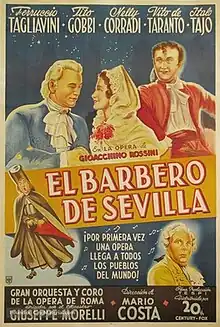 The Barber of Seville (Italian: Il barbiere di Siviglia) is a 1947 Italian opera film directed by Mario Costa and starring Ferruccio Tagliavini, Tito Gobbi and Nelly Corradi. It is an adaptation of Gioachino Rossini's 1816 opera The Barber of Seville.[1]