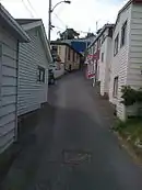 The Battery is a neighbourhood within the city of St. John's, Newfoundland and Labrador that sits on the entrance to the harbour, on the slopes of Signal Hill. It is sometimes described as an outport within the city of St. John's and is noted for its steep slopes, and colourful houses. The Battery has been the site, over the centuries, for gun emplacements (batteries), such as Fort Waldegrave, for the defence of St. John's Harbour, including during both World Wars.