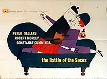 The Battle of the Sexes is a 1959 British black and white comedy film starring Peter Sellers, Robert Morley, and Constance Cummings, and directed by Charles Crichton. Based on the short story "The Catbird Seat" by James Thurber,[3] it was adapted by Monja Danischewsky. A timid accountant in a Scottish Tweed weaving company cleverly bests a brash modern American efficiency expert whose ideas threaten his way of life.