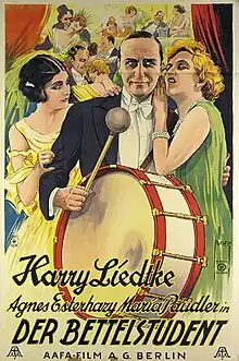 The Beggar Student (German: Der Bettelstudent) is a 1927 German silent film directed by Jacob Fleck and Luise Fleck and starring Harry Liedtke, Ida Wüst and Agnes Esterhazy.[1] It is an adaptation of Carl Millöcker's operetta The Beggar Student. It was shot at the Staaken Studios in Berlin. The film's art direction was by Botho Hoefer and Hans Minzloff.