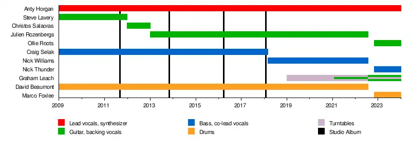- Anty Horgan – lead vocals, synthesizer (2009–present)