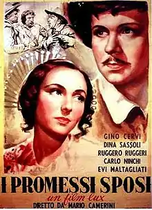 The Betrothed (Italian: I Promessi Sposi) is a 1941 Italian historical drama film directed by Mario Camerini and starring Gino Cervi, Dina Sassoli and Ruggero Ruggeri. It is an adaptation of the 1827 novel The Betrothed by Alessandro Manzoni. The film's producers organised a competition to select the lead actress (eventually won by Sassoli) which was modelled on the hunt for Scarlett O'Hara by the American producer David O. Selznick for Gone With the Wind.[1] It belongs to the movies of the calligrafismo style.