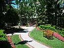 The extensive gardens, covering 12 acres (4.9 ha), were designed by landscape architect Wilbur David Cook. They contain bougainvillea, banana plants, hibiscus, and other tropical flora.[12] Svend Petersen, the Danish-American pool manager at the hotel for forty-two years, became a Hotel Ambassador in 2002.[56] He had notably opened up the pool after hours for the Beatles and taught Faye Dunaway to swim a 1940s freestyle crawl for her appearance in the film Mommie Dearest.[56]