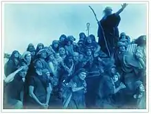 Peak years for production of Biblical movies were around 1910. Matthew Page points out that "more biblical films were released in the years from 1909 to 1911 than at any other time".[2] Enrico Guazzoni's 1913 Italian epic Quo Vadis? is often considered the first successful feature-length motion picture and one of the first films with over two hours running time.[3] Cecil B. DeMille specialized in extravagant epics throughout a career that spanned both the silent and sound eras. His 1923 silent version of The Ten Commandments (1923) included spectacular special effects for the parting of the Red Sea. De Mille followed The Ten Commandments in 1927 with King of Kings, a lavish, reverential life of Christ with a climactic resurrection scene in color. King of Kings was re-released in 1931 with a synchronized musical score.[3]