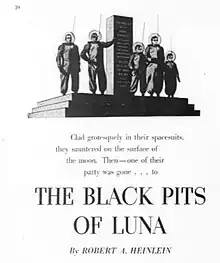 "The Black Pits of Luna" is a science fiction short story by American writer Robert A. Heinlein, about a Boy Scout on a trip to the Moon and his novel way of finding his lost brother. Included as part of his Future History, it originally appeared in The Saturday Evening Post, January 10, 1948, and was collected in The Green Hills of Earth (and subsequently The Past Through Tomorrow).