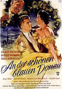 The Blue Danube (German: An der schönen blauen Donau) is a 1955 Austrian romantic comedy film directed by Hans Schweikart and starring Hardy Krüger, Nicole Besnard and Paul Hörbiger.[1] It was shot at the Schönbrunn Studios in Vienna and on location around the city. The film's sets were designed by the art director Fritz Jüptner-Jonstorff.
