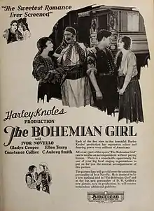 The Bohemian Girl is a 1922 British romance film directed by Harley Knoles and starring Gladys Cooper, Ivor Novello, and C. Aubrey Smith.[2] It was inspired by the opera The Bohemian Girl by Michael William Balfe and Alfred Bunn, which was in turn based on a novel La Gitanilla by Miguel de Cervantes. Originally released at 70 minutes, the surviving print is missing the first two reels and small portion of the last, timing at 46 minutes.