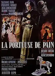 The Bread Peddler (French:La porteuse de pain, Italian:La portatrice di pane) is a 1963 French-Italian historical drama film directed by Maurice Cloche and starring Suzanne Flon, Philippe Noiret and Jean Rochefort.[1] It is based on the novel of the same title by Xavier de Montépin.