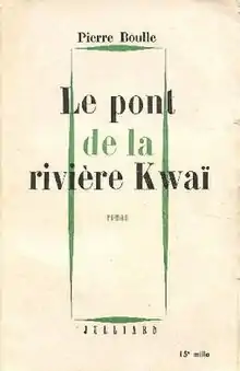 The Bridge over the River Kwai (French: Le Pont de la rivière Kwaï) is a novel by the French novelist Pierre Boulle, published in French in 1952 and English translation by Xan Fielding in 1954. The story is fictional but uses the construction of the Burma Railway, in 1942–1943, as its historical setting, and is partly based on Pierre Boulle's own life experience working in Malaysia rubber plantations and later working for allied forces in Singapore and Indochina during World War II. The novel deals with the plight of World War II British prisoners of war forced by the Imperial Japanese Army to build a bridge for the "Death Railway", so named because of the large number of prisoners and conscripts who died during its construction. The novel won France's Prix Sainte-Beuve in 1952.