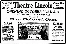 The Brute is a 1920 silent race film directed, written, produced and distributed by Oscar Micheaux. No print of the film is known to exist and the production is believed to be a lost film.[2] The original version of the film included a scene where the boxer defeats a white rival, but Micheaux was forced to remove the scene by censors.[3]