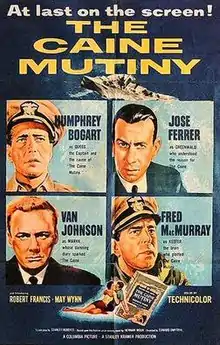 The Caine Mutiny is a 1954 American military trial film directed by Edward Dmytryk, produced by Stanley Kramer, and starring Humphrey Bogart, José Ferrer, Van Johnson, Robert Francis, and Fred MacMurray. It is based on Herman Wouk's Pulitzer Prize-winning 1951 novel of the same name.