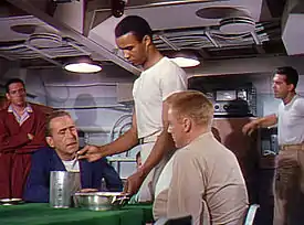 - ↑ DeCandido, Keith (November 17, 2015) "Star Trek The Original Series Rewatch: 'The Doomsday Machine'" Tor.com (Macmillan) Quote: "But the big guest is the great William Windom as Decker. He fully inhabits the role, giving him all kinds of wonderful little tics and habits, from the awkward way he sits in the captain's chair to the way he plays with the data tapes (which Windom has said was inspired by how Humphrey Bogart fiddled with ball bearings [sic] when he played Captain Queeg in The Caine Mutiny)."