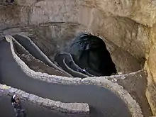 The upper part of the amphitheater is reached by the Carlsbad Caverns Trail, a hiking trail leading from the park's tourist office in the southwest, which then sinks into the cavern in the northeast. The trail has also been listed as a National Recreation Trail since 1983.