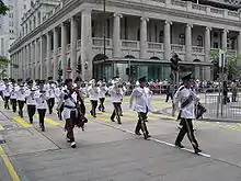 The Hong Kong Police Band marching towards the Cenotaph for the Remembrance Sunday service in November 2009.