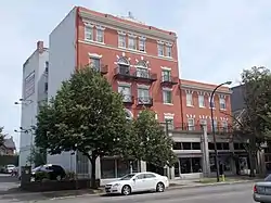 Colonial Flats and Annex, also known as The Colonial Apartments, is a historic apartment building located in the Allentown neighborhood of Buffalo, Erie County, New York, United States. The building consists of three components: the 1896 five-story, brick "Flats" to the north; the 1900 three-story brick "Annex" at the south end, and a 1926 single-story precast concrete commercial storefront that unites the Flats and Annex along Delaware Avenue. The Flats and Annex are internally connected and share a similar Colonial Revival style.[2]