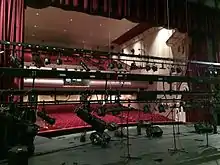 After the citizens of Idaho Falls voted to change the city's name, in 1891, residents began talking about building a theater which could host vaudeville acts, road shows, and musical performances. In 1919, three local men, C.A. Spath of the Farmers and Merchant Bank, Dr. C.M., Cline, and S.K. Mittry, a local contractor, put up the money and materials to build the Colonial Theater, at a final cost of $175,000.[2] The structure was built of steel, reinforced concrete, and brick, with an ivory colored terracotta front. It was billed as the largest theater in the Intermountain West, with an orchestra pit, eight dressing rooms, and 1,400 leather-upholstered mahogany seats. A modern ramp led to the balcony where 600 of the seats were located as well as four box seats. Because the theater was designed before modern public address systems were invented, the acoustics were designed to be superb.