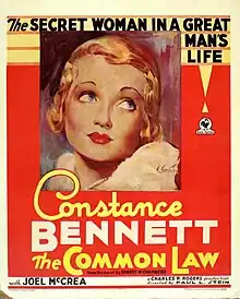 The Common Law is a 1931 American pre-Code romantic drama film directed by Paul L. Stein, produced by Charles R. Rogers and starring Constance Bennett and Joel McCrea. Based on Robert W. Chambers' 1911 novel of the same name, the film was the third film adaptation of the book, and the first during the sound-film era. It was received well both at the box office and by film critics, becoming one of RKO's most financially successful films of the year.