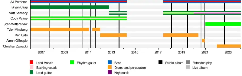 - Cody Payne – rhythm guitar, backing vocals (2006–2014)