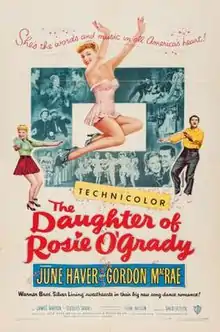 The Daughter of Rosie O'Grady is a 1950 American musical film directed by David Butler. It stars June Haver and Gordon MacRae. The story is mostly about the lives of musical performers in New York in the closing years of the 19th century. Most of the songs were written for the movie, but "Rose of Tralee" dates from the 19th century, and the song "The Daughter of Rosie O'Grady" dates from 1917.