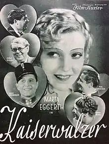 The Emperor's Waltz (German: Kaiserwalzer) is a 1933 German musical film directed by Frederic Zelnik and starring Mártha Eggerth, Paul Hörbiger, and Carl Esmond.[1] It was shot at the Tempelhof Studios in Berlin with sets designed by the art director Franz Schroedter. Location shooting took place around the Austrian spa town Bad Ischl.[2]