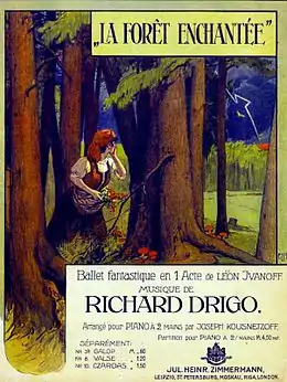 ![]() Frontispiece for the piano reduction of Riccardo Drigo's score for Lev Ivanov's La Forêt enchantée as issued by the music publisher Zimmerman, 1909. | |