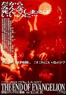 The End of Evangelion[lower-alpha 1] is a 1997 Japanese anime apocalyptic science fiction film written by Hideaki Anno, directed by Anno and Kazuya Tsurumaki, and animated by Gainax and Production I.G. It serves as an ending to the television series Neon Genesis Evangelion, which aired from 1995 to 1996 and whose final two episodes were controversial for their atypically abstract direction.