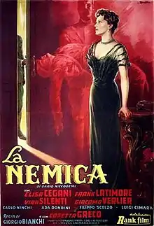 The Enemy (Italian: La Nemica) is a 1952 Italian melodrama film directed by Giorgio Bianchi and starring Elisa Cegani, Frank Latimore and Vira Silenti.[1] It was shot at the Cinecittà Studios in Rome. The film's sets were designed by the art director Mario Chiari.