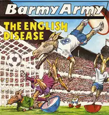 As with Tackhead and Dub Syndicate, Barmy Army are considered to be one of several bands overseen by producer and On-U Sound label head Adrian Sherwood, with bands often sharing personnel.[2] Barmy Army has been referred to both as Sherwood's "football-themed" alter ego,[3] and a pseudonym for Tackhead,[4] who were formed in 1984 by Sherwood and the former Sugarhill Records rhythm section and signed to On-U Sound.[5] The name Barmy Army was a deliberately ironic choice,[6] as the term had been shouted by football fans across English grounds for many years, turning the chant into a 'brand'.[7] The act's only album,[3][8] The English Disease has been described as a Sherwood album, with typical appearances from bassist Doug Wimbish, guitarist Skip McDonald, drummer Style Scott and others.[9] Danny Kelly describes the personnel as "the usual gang of McDonald, Wimbish and Scott but not LeBlanc".[10] Bortwhick writes that Tackhead, of whom Wimbish and McDonald were also members, contributed to what was ultimately a Sherwood-controlled album.[5] Previously, Tackhead worked with Gary Clail as the On-U Sound System and issued three critically acclaimed records of their own.[5]