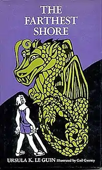The Farthest Shore is a fantasy novel by the American author Ursula K. Le Guin, first published by Atheneum in 1972. It is the third book in the series commonly called the Earthsea Cycle. As the next Earthsea novel, Tehanu, would not be released until 1990, The Farthest Shore is sometimes referred to as the final book in the so-called Earthsea trilogy, beginning with A Wizard of Earthsea.[lower-alpha 1] The events of The Farthest Shore take place several decades after The Tombs of Atuan and continue the story of the wizard Ged.