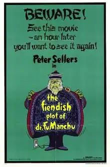 The Fiendish Plot of Dr. Fu Manchu is a 1980 comedy film. It was the final film featuring star Peter Sellers and David Tomlinson. Based on characters created by Sax Rohmer, the film stars Sellers in the dual role of Fu Manchu, a megalomaniacal Chinese evil genius,[3] and English country gentleman detective Nayland Smith.