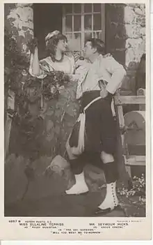 The original production was produced by Charles Frohman and opened at London's Aldwych Theatre on 11 September 1907. The piece starred Hicks as Angus Graeme, and his wife Ellaline Terriss as Peggy Quainton. William Lugg played Andrew Quainton. Zena Dare played Victoria Siddons, and when the show went on tour, she played Peggy Quainton.[3][2]