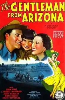 The Gentleman from Arizona is a 1939 American Western film directed by Earl Haley and written by Earl Haley and Jack O'Donnell. The film stars John 'Dusty' King, J. Farrell MacDonald, Joan Barclay, Ruth Reece, Craig Reynolds and Nora Lane. The film was released on December 25, 1939, by Monogram Pictures.[1][2][3]