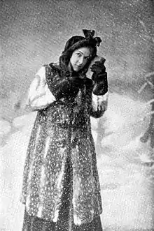 The Girl of the Golden West is a theatrical play written, produced and directed by David Belasco, set in the California Gold Rush. The four-act melodrama opened at the old Belasco Theatre in New York on November 14, 1905 and ran for 224 performances. Blanche Bates originated the role of The Girl, Robert C. Hilliard played Dick Johnson, and Frank Keenan played Jack Rance. Bates was joined by Charles Millward and Cuyler Hastings for two-week Broadway runs in 1907 and 1908.[1] William Furst composed the play's incidental music. The play toured throughout the US for several years.[2]