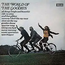 The Goodies Sing Songs From the Goodies was the 1974 debut LP record released by The Goodies. It was initially issued in January 1974 as The Goodies Sing Songs From the Goodies (Decca catalogue number SKL 5175), and was then later reissued in May 1975, retitled as The World of the Goodies with a different cover picture (Decca catalogue number SPA 416), as part of Decca's extensive World Of... series.[1]