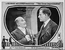 The Great Impersonation is a 1921 American silent drama film directed by George Melford and written by Monte M. Katterjohn and E. Phillips Oppenheim. The film stars James Kirkwood, Sr., Ann Forrest, Winter Hall, Truly Shattuck, Fontaine La Rue, Alan Hale, Sr., and Bertram Johns. The film was released on October 9, 1921, by Paramount Pictures.[1][2] It is not known whether the film currently survives,[3] which suggests that it is a lost film.