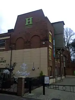A £5.8m project allowed the buildings to be joined and redeveloped throughout, uniting on one site three previous cultural venues: Cecil Higgins Art Gallery, Bedford Museum and Bedford Gallery.[1] It was felt within the organisation and the council that the new single building needed a new name that encompassed the history of the site and collections, while being more straightforward than the interim merged name. 'The Higgins' was chosen for its connection with the site as the Higgins family home and business, and the prominent role the family played in the town including Charles Higgins (1789–1862) being mayor in 1848.