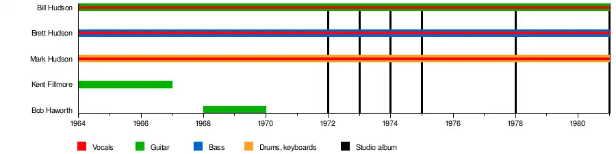 - Mark Hudson — drums, keyboards, vocals (1964–1981)