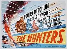 The Hunters is a 1958 American CinemaScope war film adapted from the novel, The Hunters by James Salter. The picture was produced and directed by Dick Powell and starring Robert Mitchum and Robert Wagner as two very different United States Air Force fighter pilots during the Korean War. The cast also features Richard Egan and May Britt.