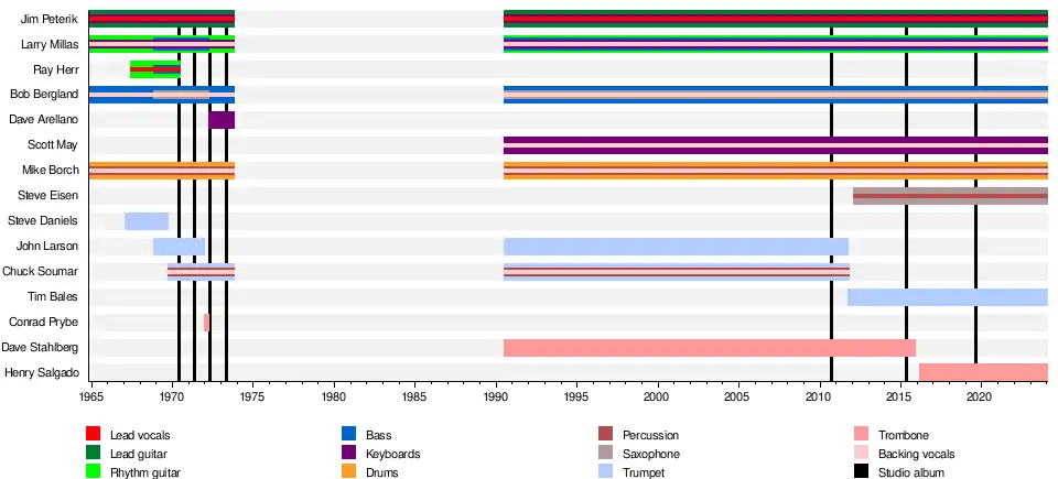 - Bob Bergland – bass guitar, tenor saxophone, vocals (1964–1973, 1990–present)