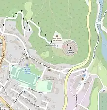 Beneath this the architect Giovanni Greppi built three octagonal modern structures rising below the baroque chapel and the sculptor Giannino Castiglioni carved the fourteen Stations of the Cross on the winding road that leads up to the shrine from the main square of the town.[3][6][5]