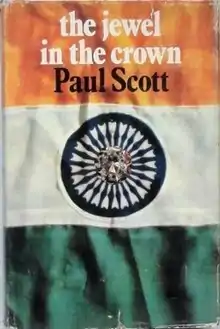 The Jewel in the Crown is a 1966 novel by Paul Scott that begins his Raj Quartet. The four-volume novel sequence of the Quartet is set during the final days of the British Raj in India during the Second World War. The novel is written in the form of interviews and reports of conversations or research and other portions are in the form of letters (epistolary form) or diary entries. The novel focuses on the triangle of an English woman, an Indian man, and a British police superintendent, setting up the events of subsequent novels in the series. It is considered Scott's "major work." The title itself, which is also an expression for something most valuable, refers to the fact that India was considered to be the most valuable possession of the British Empire. The plot has direct similarities to the novel A Passage to India by E.M. Forster published in 1924.