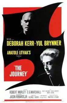 The Journey is a 1959 American drama film directed by Anatole Litvak. A group of Westerners try to flee Hungary after the Soviet Union moves to crush the Hungarian Revolution of 1956. It stars Deborah Kerr, Yul Brynner, Jason Robards and Robert Morley. Deborah Kerr and Yul Brynner were paired again since they starred in The King and I in 1956, where he had an Oscar-winning performance. The Journey was shot in Metrocolor.