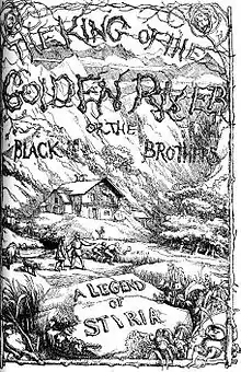 The King of the Golden River or The Black Brothers: A Legend of Stiria is a fantasy story originally written in 1841 by John Ruskin for the twelve-year-old Effie (Euphemia) Gray, whom Ruskin later married.[1] It was published in book form in 1851, and became an early Victorian classic which sold out three editions. In the "Advertisement to the First Edition", which prefaces it, it is called a fairy tale, one, it might be added, that illustrates the triumph of love, kindness, and goodness over evil; however, it could also be characterised as a fable, a fabricated origin myth and a parable. It was illustrated with 22 illustrations by Richard Doyle (1824–1883).[2] A later edition was illustrated by Arthur Rackham in 1932.