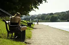 The Lakes (Danish: Søerne) in Copenhagen, Denmark is a row of three rectangular lakes curving around the western margin of the City Centre, forming one of the oldest and most distinctive features of the city's topography. The paths around them are popular with strollers, bikers and runners.